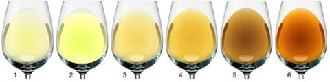 想要看出葡萄酒的颜色,最好要有一个白色背景,并将酒杯放在它前面、白葡萄酒的颜